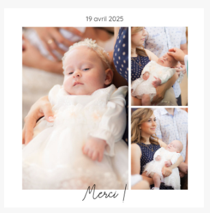 Pour dire merci autrement, nos cartes personnalisées vous permettent de créer un message qui a du sens. Choisissez vos plus belles photos, ajoutez vos mots, et composez une attention unique pour vos proches.