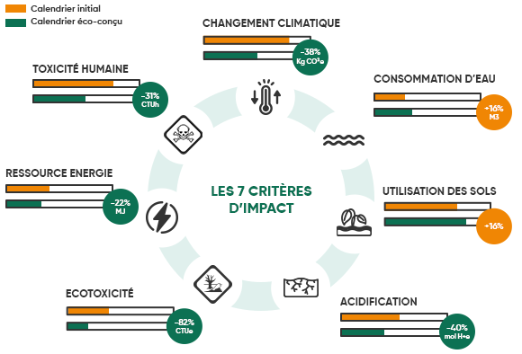 Nous enrichissons régulièrement notre offre de produits éco-conçus. Chacun est évalué selon 7 critères d’impact. Retrouvez ci-dessous la liste de ces produits accompagnés de leur notation issue de leur ACV.